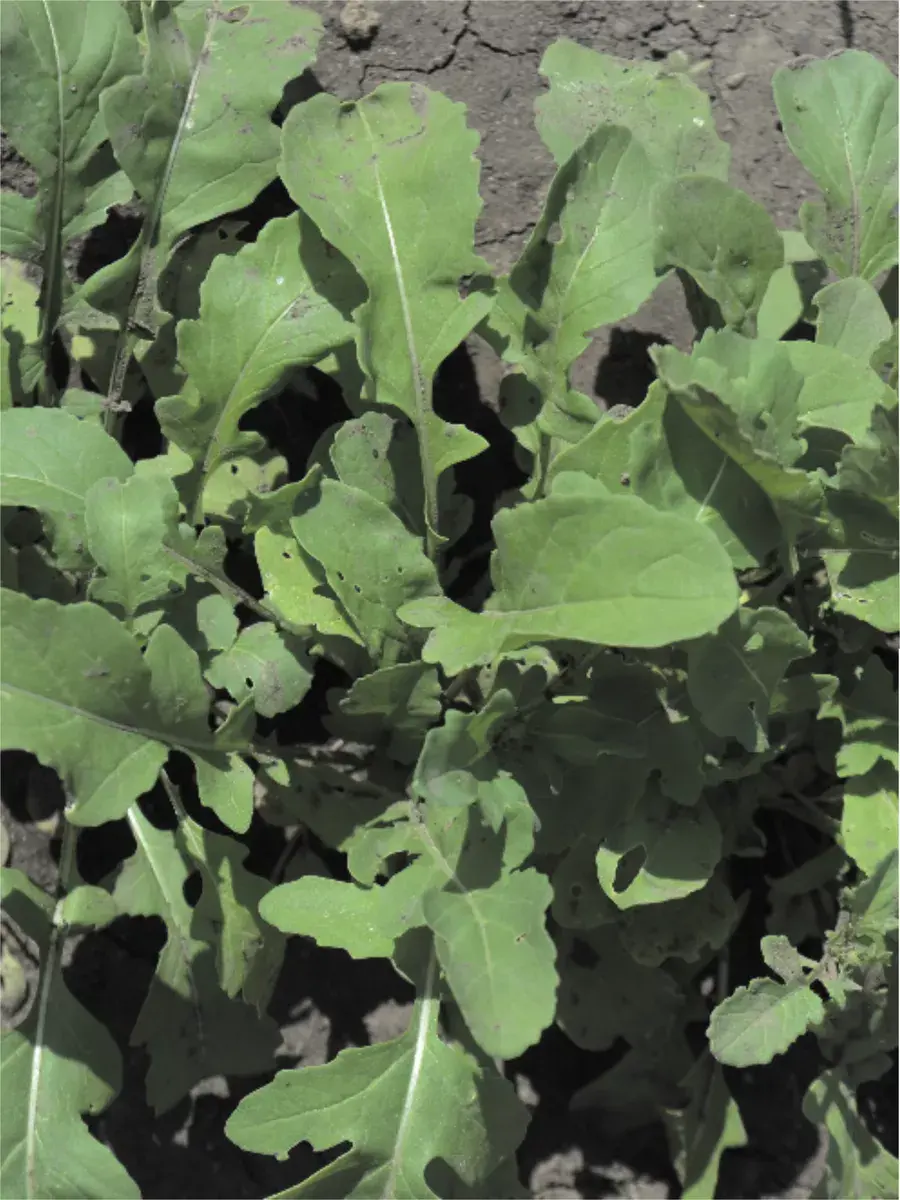 Среднеспелый холодостойкий сорт. Период от полных всходов до начала хозяйственной годности 27-30 дней. Высота растения 60 см. Лист лировидный, перисто-рассеченный, зеленый. Цветки желто-белые с фиолетовыми прожилками. Урожайность зеленой массы 2,5-3 кг/кв.м. Рукола ценится за приятный горчично-оливковый вкус, который прекрасно сочетается с любыми свежими овощами, мясом, морепродуктами. Она не только вкусна, но и чрезвычайно полезна. Зелень богата каротином, железом, йодом, цинком. Регулярное употребление рукколы повышает уровень гемоглобина, налаживает обменные процессы, укрепляет нервную систему.