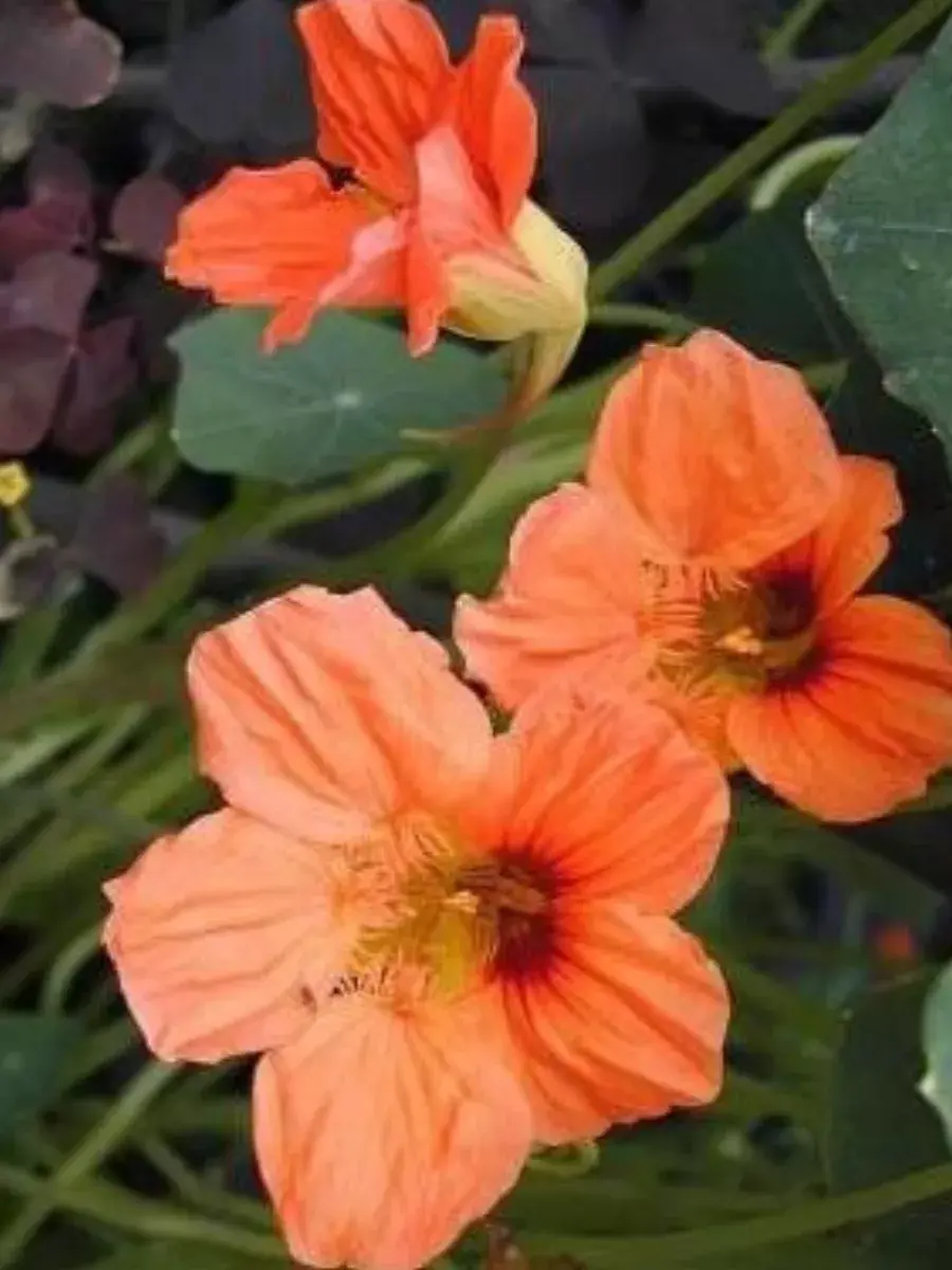 Новые оттенки популярного садового однолетника, широко используемого в вертикальном озеленении. Растение со стелющимися большими побегами, достигающими в длину 1,5 м, в плотной посадке скрывающими почву сизоватой листвой. Декоративны не только многочисленные цветки лососево-оранжевой окраски с шелковистыми лепестками, но и листья - округлые щитовидные на длинных черешках. Используют для вертикального озеленения в саду, декорирования балконов, беседок, веранд, также выращивают в качестве почвопокровного растения.