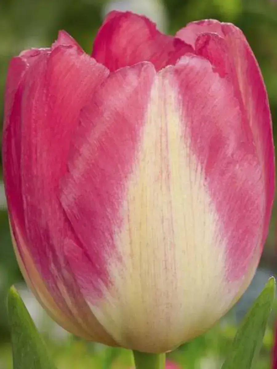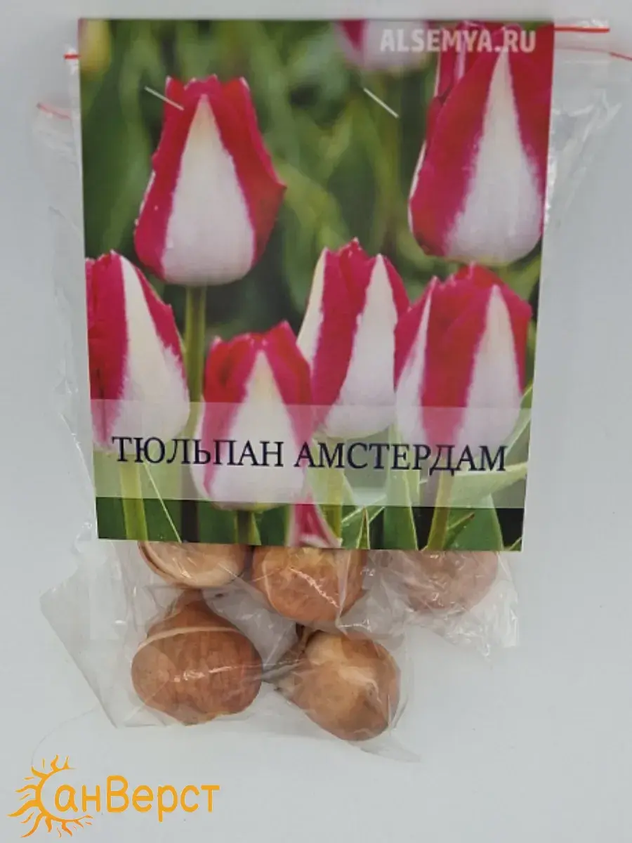 Луковицы на посадку тюльпана Амстердам группы Триумф (TULIPS TRIUMPH). Цветки яркого окраса. Кремовый центр окаймляет ярко-малиновая кайма. Цветок крупный бокаловидной формы.